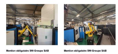 Le Groupe SAB emploie aujourd’hui 400 collaborateurs répartis sur 8 sites de production en France, dont une unité spécialisée dans la robotique et la machine spéciale fournissant des solutions en interne et pour des clients externes. Plus de 100 robots sont déployés pour le chargement et le déchargement en usinage ainsi que pour la fabrication des pièces en fonderie.