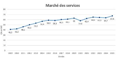 Le marché du service renoue avec la croissance à 5,8% en 2025 pour s’établir à 67,4 millions d’euros.