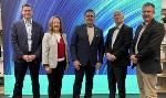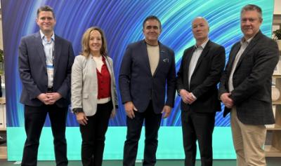 De gauche à droite : Paul Cullington, Sales Manager at HPE Networking ; Laura Campo, C&DE VAS Portfolio Director at SITA ; James Casella, VP GSP-MS at HPE Networking ; Martin Smillie, Vice President C&DE at SITA ; and Jon Clark, Director of Strategy at HPE Networking, at Mobile World Congress.