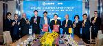 M. Trýõng Viet Cuong, directeur adjoint des activités aéronautiques du groupe Sun, et Sumesh Patel, président Asie-Pacifique de SITA, avec leurs collègues, lors de la cérémonie de signature du partenariat stratégique commercial et technologique à Hanoï.