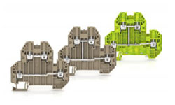 Tout comme la série SRK déjà réputée, les nouveaux modèles SRKD sont dotés d’un boîtier compact et fournissent une excellente stabilité, une résistance aux vibrations et une fixation optimale des conducteurs dans les étriers. Les borniers sont dotés d’une large ouverture qui facilite l’insertion des fils. La connexion de plusieurs fils est également possible. Fabriqué en Polyamide PA 6.6-V0, le boîtier robuste du bornier maintient fermement en position les pièces métalliques à l’intérieur. La conception des pieds de montage garantit une tenue fiable et ferme sur le rail de montage.