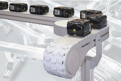 Le système VarioFlow plus Rexroth est basé sur des composants standardisés aux six largeurs de chaîne différentes dont une nouvelle de 120 mm. Cela réduit considérablement le nombre de pièces de rechange pour l’utilisateur. La chaîne standard résiste à une tension maximale de 1 250 Newtons. La faible zone de rétention de la chaîne garantit un transport plus sûr et plus fiable pour les petites pièces.