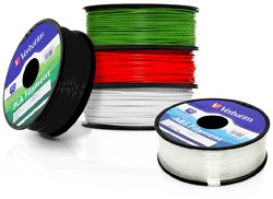 Les gammes de PLA et ABS Verbatim sont disponibles en filament de 1,75 mm de diamètre. La gamme de PLA est aussi disponible en filament de 3 mm de diamètre. Elles sont proposées toute les deux en bobines de 1kg, dans une palette de couleurs vives. Le filament de PLA (Acide PolyLactique) est en plastique biodégradable dérivé de l’amidon de maïs, garanti sans métaux lourds et sans composés chimiques courants tels que les phtalates et le bisphénol-A (BPA). Le filament d’ABS (Acrylonitrile Butadiène Styrène), fabriqué à partir du copolymère styrène-acrylonitrile mélangé à un élastomère à base de polybutadiène, est rigide et résistant aux chocs.