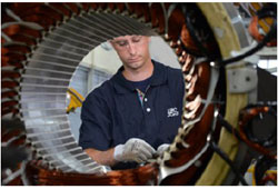 Pour les interventions en local, que ce soit pour la maintenance curative ou l’installation, Leroy-Somer a créé une structure spécifique constituée d’un réseau de 50 Centres de Service Premium sur le territoire français. « Il s’agit d’un label qui démontre leur capacité d’intervention selon la définition de cette nouvelle offre de service », explique Eric Moreau, Directeur des Filiales de Service au sein de Leroy-Somer. Les Centres de Service Premium sont spécialement formés et entrent dans les Systèmes d’Assurance Qualité de Leroy-Somer. Outre l’accès à 15 000 références produits distinctes disponibles, les Centres Premium doivent disposer d’importants moyens d’intervention : équipements de manutention, four à pyrolyse, cuve d’imprégnation pour trempage ou sous vide et pression, cabine de peinture, extracteur de roulements, équipement de chauffage à induction, plate-forme d’essais à vide d’une capacité de 400 kW, instrumentation ondes de choc / Baker test, oscilloscope 2 voies 200 MHz, analyseur de réseau triphasé, caméra infrarouge, collecteur analyseur vibratoire… Afin d’optimiser la consommation électrique et la disponibilité des systèmes d’entraînement électromécaniques, Leroy-Somer applique son expertise tout au long de la durée de vie du produit. Ceci inclut bien évidemment aussi une démarche d’accompagnement et de conseil. Dans cette démarche, une option à envisager pourra être le remplacement ou la modernisation des équipements existants pour augmenter l’efficacité énergétique ou la disponibilité. Leroy-Somer proposera alors sa capacité d’audit et d’Ingénierie, notamment en se basant sur ses solutions innovantes qui sont au plus haut niveau de rendement du marché.