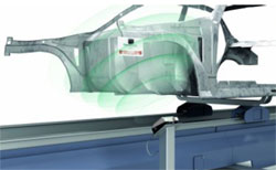 La tête de lecture/écriture vérifie que le procédé d’assemblage des éléments de carrosserie utilise les pièces correctes pour le modèle concerné. Les étiquettes fournissent les données clés à la supervision afin que les bonnes pièces soient utilisées assemblées sur chaque véhicule.