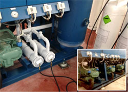 La centrale principale en froid positif du système hybride R-404A/CO2 se compose de six compresseurs à vis Bitzer dotés de vannes de détendeur électroniques, qui couvrent 73 armoires et 7 chambres froides. Les données pour Opteon® XP40 ont d’abord été entrées dans le logiciel de commande. Puis la conversion a commencé après la fermeture du magasin le samedi soir, et s’est terminée largement avant l’ouverture du dimanche matin. Une fois le R-404A évacué du système, le filtre déshydrateur a été remplacé, comme dans toute maintenance. Puis le système a été tiré au vide, inspecté à la recherche d’éventuelles fuites, et chargé avec Opteon® XP40. La conversion s’est déroulée sans aucun problème. Claudio Bresolin, copropriétaire de CREA SpA, précise : « Le réglage du système pour Opteon® XP40 a été très facile : l’installation utilisant des vannes de détendeur électroniques et le système Danfoss ADAP-KOOL®1, nous avons simplement entré les nouveaux coefficients sur un ordinateur. Il n’a fallu remplacer aucun autre composant, et il n’y a pas eu besoin de changer d’huile. Les mesures prises avant et après la conversion ont montré que le nouveau fluide frigorigène possède un rendement énergétique nettement plus élevé que le R-404A précédemment employé. »