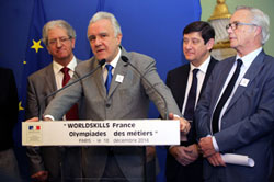 La candidature a été officialisée au Ministère du Travail, en présence de François Rebsamen, Ministre du Travail, de l’Emploi, de la Formation professionnelle et du Dialogue social, de Michel Guisembert, Président de WorldSkills France, de Patrick Kanner, Ministre de la Ville, de la Jeunesse et des Sports et du chef étoilé Alain Ducasse, parrain de la candidature 2019.
