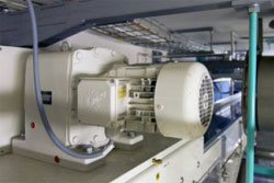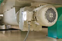 Depuis des années, le chocolat est produit sur place selon des recettes exclusives de Zotter, ce qui est rare pour un petit fabricant. Les fèves de cacao livrées à l’usine sont nettoyées, torréfiées pendant quelques minutes à plus de 100°C, puis stérilisées à la vapeur. Des motoréducteurs de convoyeur d’une puissance nominale de 0,75 kW assurent le transport entre les postes de nettoyage, de torréfaction et de stérilisation.
