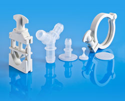 Les BioValves et les BioClamps sont moulés à partir de nylon renforcé de verre USP Classe VI et résistent au passage en autoclave à 134 ° C pendant 5 minutes. Ils peuvent être irradiés à 40 kGy (4Mrad) sans affaiblissement détectable.