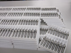 La miniaturisation, la précision et la compatibilité salle blanche sont les moteurs de cette évolution, en particulier dans le secteur de la dialyse, du dosage et des analyses. La mini-vis à billes Carry remplit cette mission depuis près de 5 ans et occupe actuellement cette niche avec énormément de succès. Le diamètre de la tige filetée roulée, filigrane, est de 4 mm, le pas de 1 mm et le diamètre extérieur de l’écrou se limite à 8 mm.