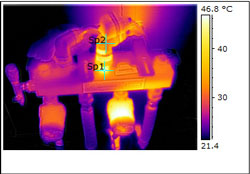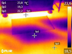 empérature, mais le fait d’avoir défini la même valeur d’émissivité conduit à des conclusions erronées. En réalité, un ruban isolant a été appliqué à Sp1, qui dispose d’une émissivité très proche de la valeur définie dans l’outil. Par conséquent, le débit du flux est à 44 °C et non à 30,5 °C.
