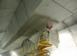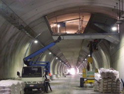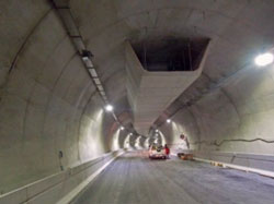 Des résultats similaires ont été obtenus avec un revêtement projeté dans le tunnel de Serralunga en Italie. Ouvert à la circulation en décembre 2013, celui-ci dispose de deux issues de secours, sous forme de voies suspendues. La difficulté consistait à revêtir ces issues de secours d’un matériau capable de supporter des températures extrêmement élevées, protégeant à la fois la structure du tunnel et les usagers contre le feu et la fumée. Le produit a été appliqué sur un grillage galvanisé, ce qui a permis d’enduire toutes les zones de la surface du tunnel en un temps très court et pour un coût moindre. Le traitement des issues de secours suspendues renforce de manière considérable la protection des usagers du tunnel. Il a fallu à peine 40 jours pour installer 600 mètres carrés de protection.