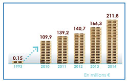 L’objectif fixé était de 200 millions d’euros... Son chiffre d’affaires consolidé pour 2014 sera finalement de 211,8 millions d’euros, en hausse de 27,36% par rapport à 2013. Une gageure dans un environnement économique difficile avec une industrie particulièrement éprouvée en France alors qu’elle constitue le principal débouché des palettes.