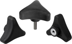 Les modèles de poignées en question sont disponibles sous trois formes ergonomiques : poignées de serrage de forme ronde et haute, boutons triangle et boutons aster. Tous les éléments de manœuvre de la gamme « SYMPA touch » comportent un composant dur en matière plastique renforcée de fibre de verre ainsi qu’un composant souple en élastomère thermoplastique. Ils sont disponibles avec taraudage ou filetage, en différentes longueurs de diamètre M8 ou M10, avec finition en acier ou en acier inoxydable.