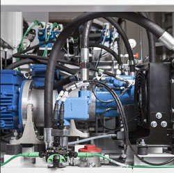 La centrale hydraulique, commandée par terminal-automate Eaton, présente un degré élevé d’évolutivité grâce à son interface Ethernet et à ses possibilités de communication avec les protocoles courants du marché comme avec le SmartWire-DT. L’intégration de SmartWire-DT permet au terminal-automate de se connecter à des appareils de commande moteur sans câblage point à point classique. Le temps de câblage d’une machine peut ainsi être réduit jusqu’à 85 %.