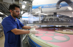 Les lasers pulsés atteignent des performances toujours plus hautes qui placent les fabricants de laser et de verre devant de gros challenges techniques pour la conception et la production du milieu actif et des composants optiques passifs comme les miroirs, lentilles ou séparateurs de faisceaux. « Afin de fabriquer un verre laser performant, il est particulièrement important de maîtriser deux points : il faut adapter de manière optimale le façonnage mécanique au traitement qui y sera déposé. Le design des couches minces ainsi que les matériaux et processus utilisés doivent être ajustés de manière optimale selon la propagation du faisceau laser » explique Dr Marc Clement. Dans son centre de compétences pour les traitements à Yverdon-les-Bains (Suisse), SCHOTT dispose de ces capacités, à la fois grâce à son savoir-faire et à son parc complet de machines. « Nous sommes ainsi en mesure, à côté des verres laser actifs, de livrer aussi à partir d’une seule source les composants passifs correspondants aux exigences de nos clients » poursuit Marc Clement.
