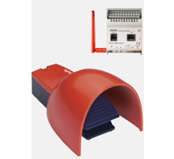 L’alimentation se fait par batterie, ce qui crée les conditions nécessaires à l’établissement d’une connexion radio bidirectionnelle toujours disponible. Chaque ensemble est composé d’une pédale sans fil et d’un récepteur/relais de sécurité, le système a été soumis aux tests CE de type et noté au niveau de performances PLd selon ISO EN 13849-1 et SIL 2 d’après la norme CEI 62061.