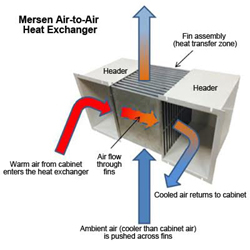 Les échangeurs de chaleur air-air de Mersen constituent une solution de refroidissement idéale pour les armoires industrielles abritant des dispositifs de commutation à base de semi-conducteurs à fort dégagement de chaleur, tels que les IGBT ou les SCR. Les échangeurs de chaleur air-air de Mersen sont conçus pour extraire l’air chaud de l’armoire, refroidir cet air en le faisant passant par un dissipateur thermique hermétique de conception spéciale, puis rediriger l’air ainsi refroidi vers l’armoire. Cette méthode simple mais efficace assure une isolation complète entre l’air de l’armoire et l’air ambiant extérieur, en créant une solution de refroidissement constituée d’une boucle fermée autonome hermétique qui garantit qu’aucun air extérieur (poussière, pollution, humidité) ne peut pénétrer à l’intérieur de l’armoire.