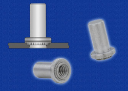 Les écrous en acier au carbone (type B) et acier inoxydable (type BS) s’installent rapidement et de façon définitive dans des tôles en aluminium ou en acier d’épaisseur 1 mm (.040"). L’écrou s’insère dans un trou de montage de diamètre préalablement défini dans le panneau, puis en appliquant une force d’installation suffisante à l’aide d’une presse PEMSERTER® ou de toute autre presse standard afin que la jupe de l’écrou s’insère dans la tôle . Une fois installé, l’écrou devient partie intégrante du montage grâce au processus qui ne requiert aucune opération secondaire.