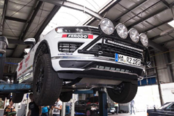 Adapté aux conditions difficiles : l’enregistreur de données durci SomatXR se trouve à bord du Touareg Cape to Cape. Des jauges de contrainte sont installées sur le châssis du véhicule Cape to Cape.