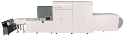 La solution compacte AcceleJet, mesurant bout-en-bout 7,70 mètres, permet une impression dynamique jet d’encre couleur de haute qualité recto verso, avec une bobine simple laize vers du feuille à feuille. Cette solution s’intègre parfaitement aux flux d’impression feuille à feuille.