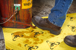 Outre les nouveaux absorbants avec revêtement imperméable, Brady offre également un nouveau tapis absorbant adhésif pour le contrôle des déversements. Doté d’un adhésif spécial, l’absorbant adhésif de Brady est très souple d’utilisation et adhère aux surfaces propres et sales. L’absorbant peut être facilement retiré en soulevant les coins et ne laisse aucun résidu. De plus, il peut être réappliqué sur une autre surface, même après l’absorption de liquides.