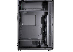 Flux d’air organisé pour un refroidissement performant. Le boîtier est séparé en trois compartiments pour le flux d’air. Trois ventilateurs de 120mm apportent de l’air frais depuis l’avant des panneaux latéraux. Chacun est recouvert d’un filtre à air magnétique et lavable. Deux ventilateurs additionnels de 120mm peuvent prendre place dans les compartiments du haut et du milieu, tandis que l’alimentation évacue la chaleur du bas par elle-même. Ceci divise le flux d’air pour l’alimentation, la carte mère et les disques durs afin qu’ils ne s’influencent pas. Le rhéobus intégré aide à avoir le bon refroidissement.