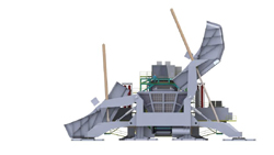 La DTMS augmente l’efficacité du concassage sur site en raison de sa configuration à double benne. Un engin recule sur une benne jusqu’à un dispositif de retenue implanté dans le sol. Après avoir déversé son chargement au fond de la benne, il avance lentement, puis abaisse sa plate-forme et s’éloigne. Une fois l’engin dégagé de l’extrémité de la benne, cette dernière peut être relevée. A mesure que la benne s’élève, il déverse le matériau provenant de la décharge de la benne et le dépose dans la trémie du transporteur à tablier métallique. Au fur et à mesure de son introduction sur le transporteur, le matériau est dirigé vers la calibreuse où il est broyé à la taille appropriée. Une fois broyé, le matériau est déposé sur le convoyeur de décharge, où il est acheminé vers un transporteur à gradins. Tandis que se déroule ce processus, un autre engin dépose des matériaux dans la benne jumelle, avec pour effet d’augmenter le nombre de rotations des engins.
