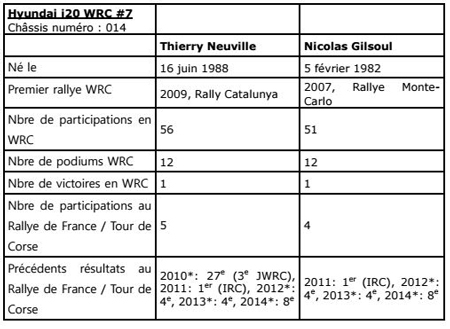Thierry Neuville et Dani Sordo porteront les couleurs du Hyundai Shell World Rally Team tandis que Hayden Paddon et Kevin Abbring, qui disputera son quatrième rallye WRC cette année, représenteront le Hyundai Mobis World Rally Team.