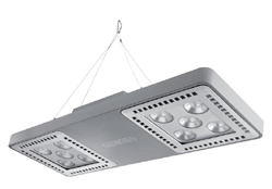 La suspension industrielle Smart [4] de Gewiss est une solution d’éclairage alliant efficacité énergétique et performances photométriques élevées dans le temps (80 000 heures avec un maintien du flux à 80 % et 100 000 heures avec un maintien du flux à 70 %). Elle dispose d’une optique de haute puissance permettant une focalisation très précise du flux lumineux.