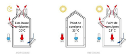 Night-cooling : la nuit, lorsque les locaux sont inoccupés, la VNI® permet un balayage de l’air ambiant afin d’évacuer la chaleur accumulée durant toute la journée et ce, jusqu’à atteindre une limite basse de la température ambiante.