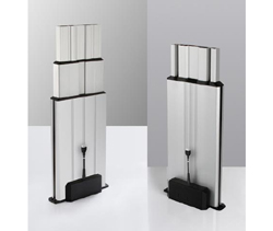 RK Rose+Krieger livre la colonne télescopique en version synchrone comme solution « plug & work » pré-équipée. Cette unité, entièrement pré-initialisée, se compose de deux colonnes télescopiques Multilift II, d’un dispositif de commande Compact-e-3-EU, d’un câble secteur et de profilés de recouvrement ainsi que d’une télécommande à choisir entre plusieurs options. Plus rien ne s’oppose donc à la construction facile d’un poste de travail doté d’une puissance jusqu’à 3 000 N par colonne, avec des courses de 355 mm à 500 mm. La forme de construction plate permet de réduire encore plus l’encombrement.