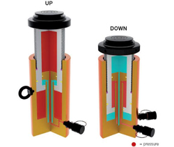 La facilité d’utilisation et la fonctionnalité se combinent pour produire la dernière gamme de vérins Holmatro, les vérins double effet avec écrou de sécurité offrant une hauteur piston rentré extrêmement faible. Unique, car les vérins sont à peine plus longs que les vérins avec écrou de sécurité à retour sous charge.
