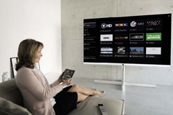 L’application Loewe « Smart tv2move » transforme la tablette en second écran pour regarder la télévision en direct (avec le TV allumé ou en veille), 2 chaînes en simultané (une sur le TV, une autre sur la tablette) ou les enregistrements disponibles dans le TV.