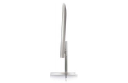 Le téléviseur se décline en 4 variantes : aluminium argenté, aluminium noir, blanc laqué et Dark Gold à la patine unique pour chaque exemplaire. Cette nouvelle finition offre des nuances particulières du fait d’un travail manuel sur plusieurs couches, suivi d’un ponçage spécial. Le total look argenté ou blancest possible grâce aux choix du tissu du bandeau haut-parleur. La beauté du panneau arrière autorise une installation n’importe où dans la pièce, sur pied de sol ou fixé au mur. Sur pied, il suffit de quelques pressions sur la télécommande pour changer l’orientation du téléviseur grâce à la rotation motorisée.
