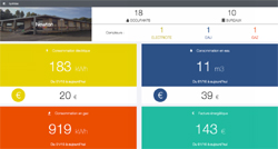 La plateforme analyse ces données et les met à disposition du gestionnaire du bâtiment. Le tableau de bord web (ci-contre) indique les consommations et les recommandations d’actions correctrices ;