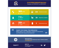 La solution iQSpot propose le suivi et l’analyse des consommations énergétiques de bâtiments de bureaux tout en impliquant tous les usagers, et fournit à ses clients :