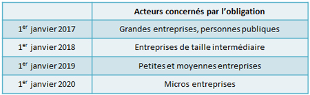Ce texte établit l’obligation pour tous les fournisseurs des services publics (Etat, collectivités territoriales et établissements publics) de transmettre leurs factures au format électronique selon un calendrier progressif à partir de 2017.