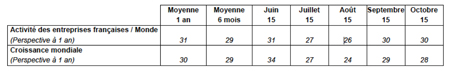 Les anticipations à un an de la conjoncture mondiale évoluent peu en octobre et restent voisines de leur niveau de long terme. Elles demeurent positives en Amérique du Nord et en Europe, particulièrement en Europe de l’Ouest. En revanche elles se replient dans les pays émergents et, particulièrement en Asie Océanie où, pour la première fois depuis la création du baromètre, elles passent sous la moyenne mondiale.
