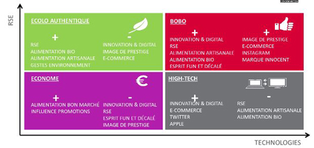 Ils n’ont pas tous la même sensibilité au prix. Contrairement aux économes, pour les autres segments le prix sera secondaire par rapport aux critères RSE (écolos authentiques et bobos) et innovation/digital (high-tech et bobos).