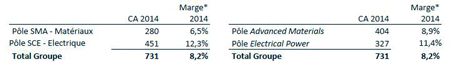 Le reporting du Groupe sera modifié à partir de 2016 pour prendre en compte cette nouvelle configuration. Les chiffres 2014 retraités sont ainsi les suivants :