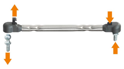 La force de retenue du pivot sphérique n’est pas affectée, même après un démontage répété. Elle reste garantie de manière durable jusqu’à 300 Nm (pivot M6) malgré une ouverture et une fermeture répétées de la liaison. Les articulations angulaires démontables sont également disponibles comme variante à taraudage M5 et M6 en combinaison avec des tiges filetées dans des longueurs sur mesure à partir de 80 mm (entraxe).