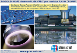 Peter Langhof, expert en plasma et gestionnaire du projet chez PLASMATREAT, explique cette technologie : « ... l’application du plasma Openair® s’opère en deux opérations extrêmement simples et ce en une seule étape très rapide qui ne dure que quelques secondes : A/ l’application du plasma par buse provoque simultanément le nettoyage microfin et B/ une forte activation de la surface en plastique. la montée en température de la surface de plastique pendant le traitement au plasma est inférieure à 30° C et les substrats peuvent être transportés à travers le jet de plasma à une vitesse de plusieurs centaines de mètres par minute. en l’occurrence chez ROHDE & SCHWARZ pour le prétraitement spécifiques des composants électroniques, des buses rotatives brevetées produisent une action très douce parfaitement adaptée ... »