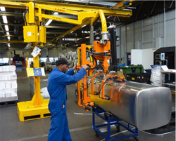Toujours en quête d’innovations, DALMEC, conçoit des solutions « métier » adaptées pour répondre à des exigences de déplacements de tout type de produit, sans effort et en toute sécurité. En l’occurrence, les manipulateurs DALMEC développés pour manœuvrer des bonbonnes et des réservoirs mécaniques, ont été conçus et réalisés pour répondre particulièrement aux exigences du monde industriel des secteurs de la métallurgie et de la mécanique, tenant compte de manipulations particulièrement difficiles comme celles rencontrées avec des réservoirs de toutes tailles et de tout poids. L’opérateur peut ainsi déplacer sa charge, même en porte-à-faux, dans tous les points du volume de travail aucun sans effort et dans des conditions optimales d’ergonomie et de sécurité.