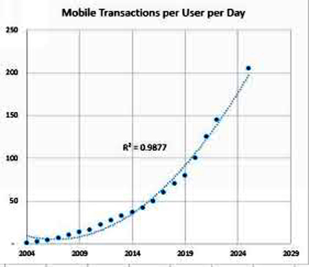 En 3 ans, la résistance n’a donc pas baissé les armes et le comportement des managers IT face à la très prochaine pénurie des talents Mainframe n’a que très peu évolué. Pourtant le marché, lui, a bougé, notamment avec le développement exponentiel des usages mobiles. Ainsi, dans son livre blanc The Technology Economics of the Mainframe, Part 3 : New Metrics and Insights for a Mobile World, le Dr Howard Rubin rappelle que si en 2004 on constatait en moyenne moins d’une transaction mobile par jour et par utilisateur, ce chiffre a dépassé les 37 en 2014. Et pourrait être multiplié par 5 pour atteindre 200 d’ici 2025. Avec 2 milliards d’utilisateurs mobiles à cette date, cela représenterait un total de 400 milliards de transactions quotidiennes.