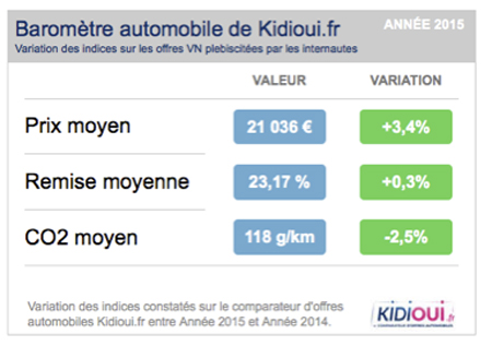 Le baromètre Kidioui.fr a été établi à partir des données récoltées lors des centaines de milliers de requêtes trimestrielles des internautes en recherche de véhicule neuf, et des données fournies dans les 30 000 offres de nos vendeurs partenaires, mises à jours quotidiennement.
