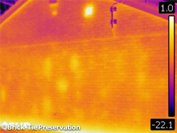 Pour Brick Tie Preservation, les principaux avantages de la thermographie résident dans sa capacité à révéler l’isolation absente ou défaillante, ainsi que les emplacements présentant un risque de condensation. Elle permet également de repérer les ponts thermiques tels que les cavités bouchées. Dans les bâtiments anciens, elle l’aide également à trouver les ossatures en bois et les colombages dissimulés, les ouvertures rebouchées et les fuites.
