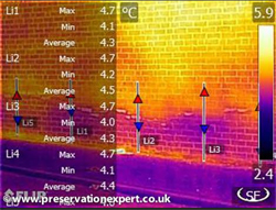 Non seulement elle constitue une aide importante au diagnostic, mais la FLIR T420bx de Brick Tie Preservation permet à la société à acquérir des connaissances scientifiques. Par exemple, elle a été utilisée dernièrement pour mieux comprendre comment le salpêtre influe sur les caractéristiques thermiques de la maçonnerie, mais également comment l’air vicié, fréquent en hiver, contribue à augmenter l’humidité.