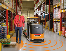 Une telle synergie entre l’homme et la machine est rendue possible grâce à un système intégré de détection des mouvements. Le « Motion Tracking System » possède un champ de vision assisté par capteurs de 360°, qui permet à l’appareil de réagir en permanence à son environnement. Il peut interpréter les mouvements de l’opérateur, deviner ses intentions et interagir avec lui. Grâce à ce dispositif de reconnaissance de son environnement assisté par laser, le STILL iGo neo CX 20 perçoit la topologie de l’ensemble du magasin, détecte les rayonnages et les obstacles, mais aussi l’opérateur et les autres personnes présentes.