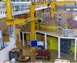 Une série de trois ponts roulants adjacents couvre la largeur de l´une des deux immenses salles expérimentales du site ISIS pour permettre d´accéder aux différentes zones abritant le matériel de définition des faisceaux. Mais après l´agrandissement des bâtiments, pour recevoir des instruments supplémentaires, de nouveaux espaces se trouvaient dans une zone morte inaccessible aux ponts roulants.